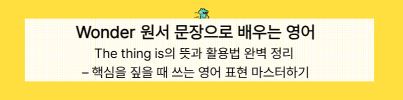 오늘은 원서 Wonder에 나오는 표현을 통해 영어 대화 속에서 핵심을 짚을 때 자주 쓰이는 표현, "The thing is"에 대해 학습해봅니다.